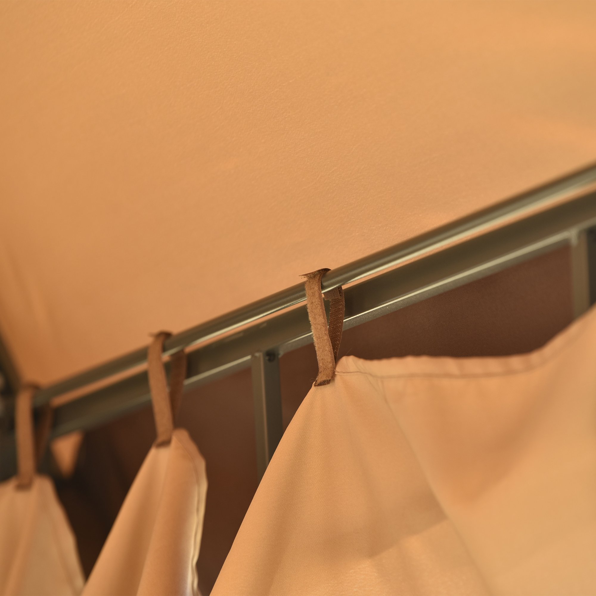 Our gazebo roofs are covered with 180g/m² polyester with high-strength nylon for water resistance and durability. Designed with 2-tier roofs, it improves the air circulation while keeping stable in windy days. Creative domed-top design offers better drainage to avoid water accumulation in the raining.