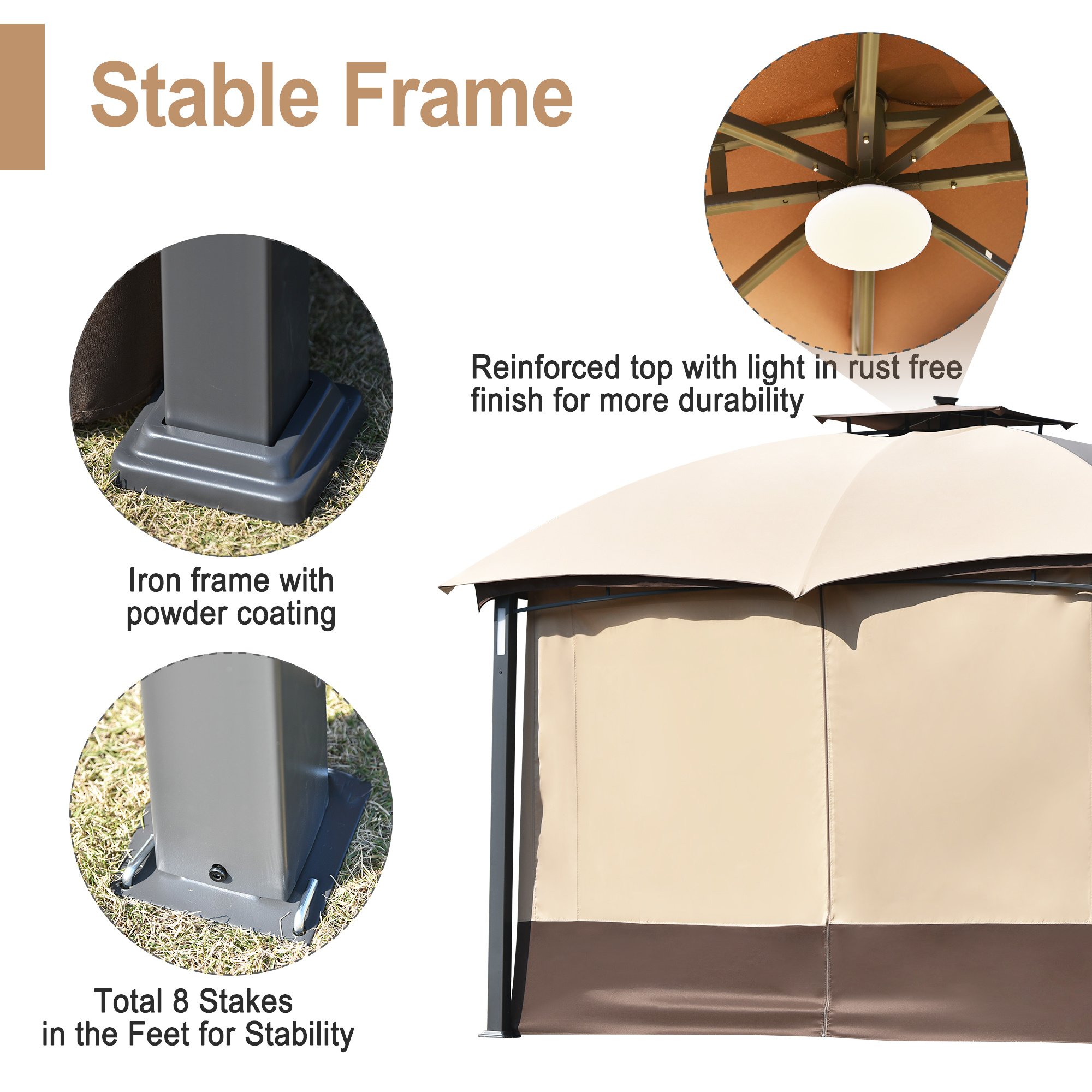 | Product Name | 10ft W*12ft L Outdoor Double Vents Gazebo Patio Metal Canopy with Screen and LED Lights for Backyard, Poolside, Brown |