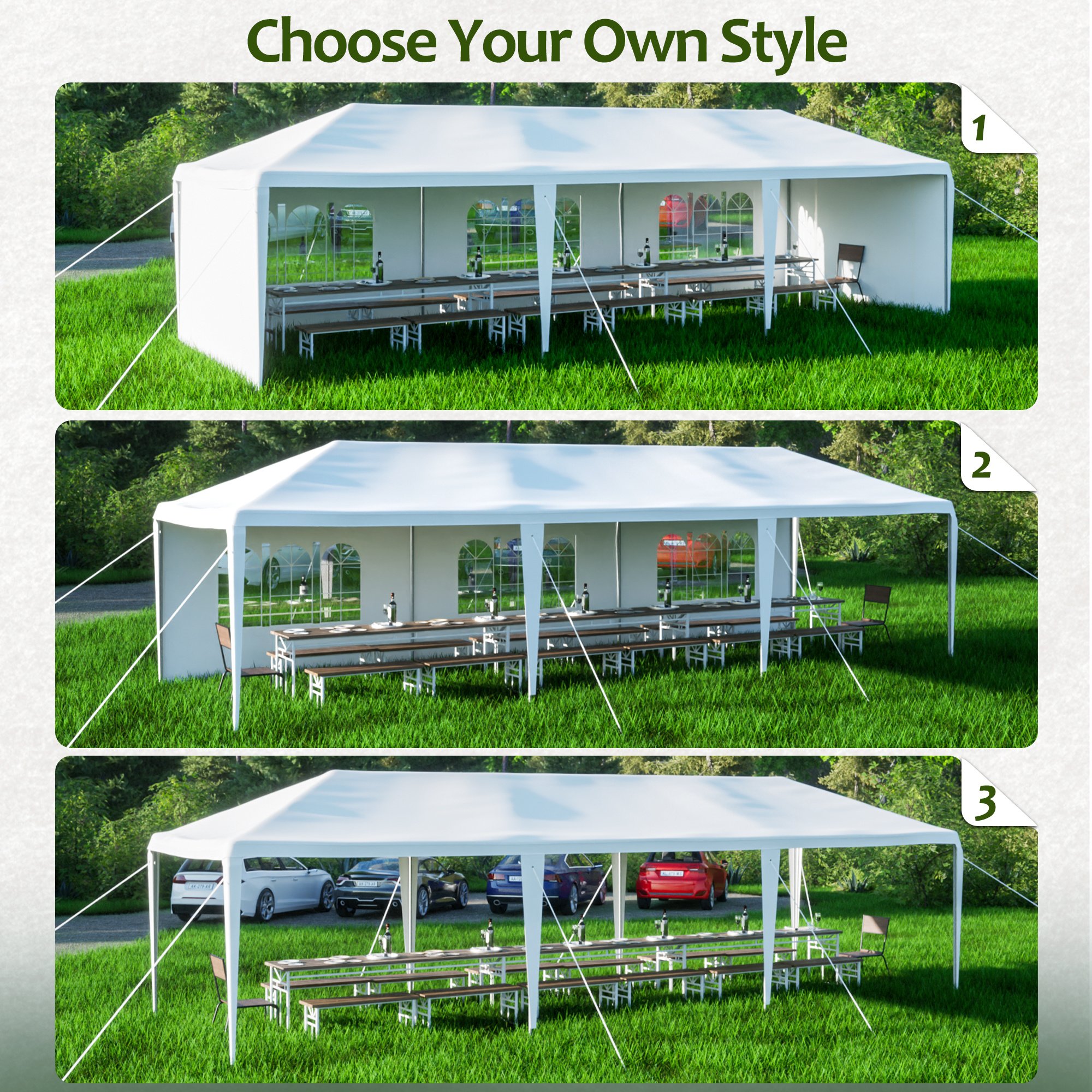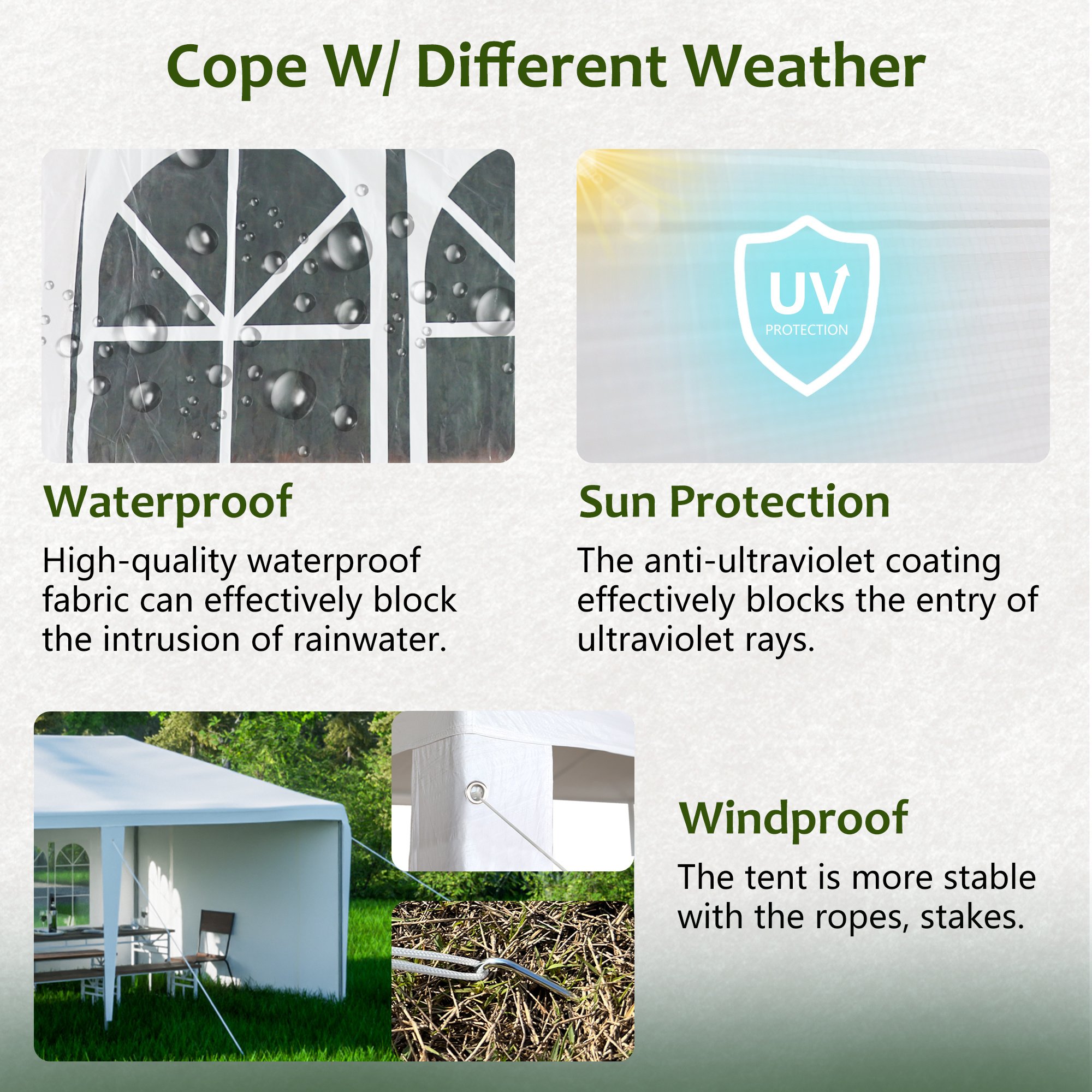 you are finding a canopy for your outdoor space to provide shelter, our practical canopy is good to be an indispensable choice for you to hold outdoor activities. Made of power coated metal tube and premium PE, the canopy is sturdy and anti-rust for long time using. In addition, the whole canopy is connected with strong and thicker accessories so that the frame is stable after setting up. Comes with 3 removable sidewalls with window and 2 sidewalls with zipper door, the canopy can keep warmer and also improve air ventilation inside. You don't have to spend too much time to assemble the canopy if you set it up with other people. It is suitable to use for many activities like camping, picnics, outdoor sporting events and so on. You and your friends can really enjoy the outdoors with our canopy.