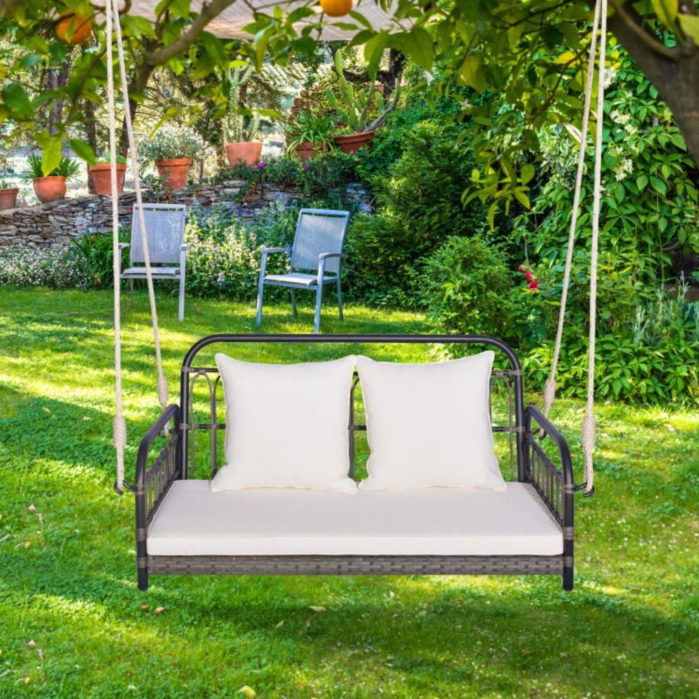 3.880 lbs Max Load: Thanks to its sturdy construction and large sitting area, this patio hanging bench holds up to 880 lbs while accommodating 2 people at once, so you can enjoy leisure time with your beloved one.
