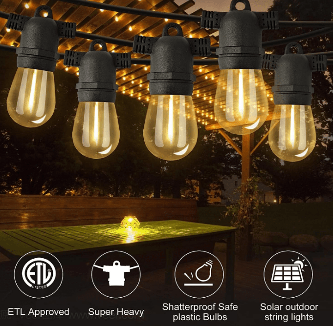 SKU: PSS 14-4S. [] 2W, 15m, 15 pc, Outdoor Solar Series Light Outdoor String Light with Remote, USB Port, 32 LED Bulbs Solar Patio Solar Lights Outside Garden Garden Fence Bistro Loop Wedding Decor-Black Bulb specification: 2W Light string 15 m 15pc LED bulb Solar power generation / power supply is configured Spacing distance: 1 meter wire color: black Main line specification: 2x1.0mm 2 lamp holder: E27 copper ring Connection plug: double round insert meter Wire material: PVC + copper-coated aluminum Indoor and outdoor use: outdoor use Features: can be light, anti-crushing Light source type: LED Power supply: electric cable Light color: warm yellow Theme: Party, wedding, garden, courtyard Events: holiday, patio, outdoor lighting or decorations Style: modern Brand name: PLSTPFT product description Solar energy string lamp outdoor waterproof. 3 Mode / 5 brightness level (15%, 25%, 50%, 75%, 100%) / 4 timing function (2 hours, 4 hours, 6 hours, 8 hour timer off), you can change the brightness to create a very good atmosphere in your patio or outdoor space Solar and USB charging power supply: solar series lights are powered by upgraded efficient solar panels and USB charging ports, USB charging for 6 hours and solar charging for 8 hours. When fully charged, it provides up to eight hours of lighting per day. The extra USB charging port guarantees dual battery life without worrying about constant rainy days Multiple occasions & easy to hang: Old fashioned solar string lamp outdoor waterproof emits beautiful and bright, but not too intense light, creating a warm and romantic atmosphere for your space. Perfect for wedding, birthday parties or other events to use. There is a hook on the top of the socket, which is easy to hang with a pull rope or rope, saving you time Anti-breaking bulbs: E26led Bulbs are made of high quality plastic and are more resistant than glass bulbs. It also comes with some free hooks and bow ties to prevent items from shaking or falling due to wind, rain or other uncontrollable factors, and the IP65 waterproof solar outdoor string lights can work properly in any weather. Perfect for illuminating your garden, backyard, terrace, balcony or any other place you want.