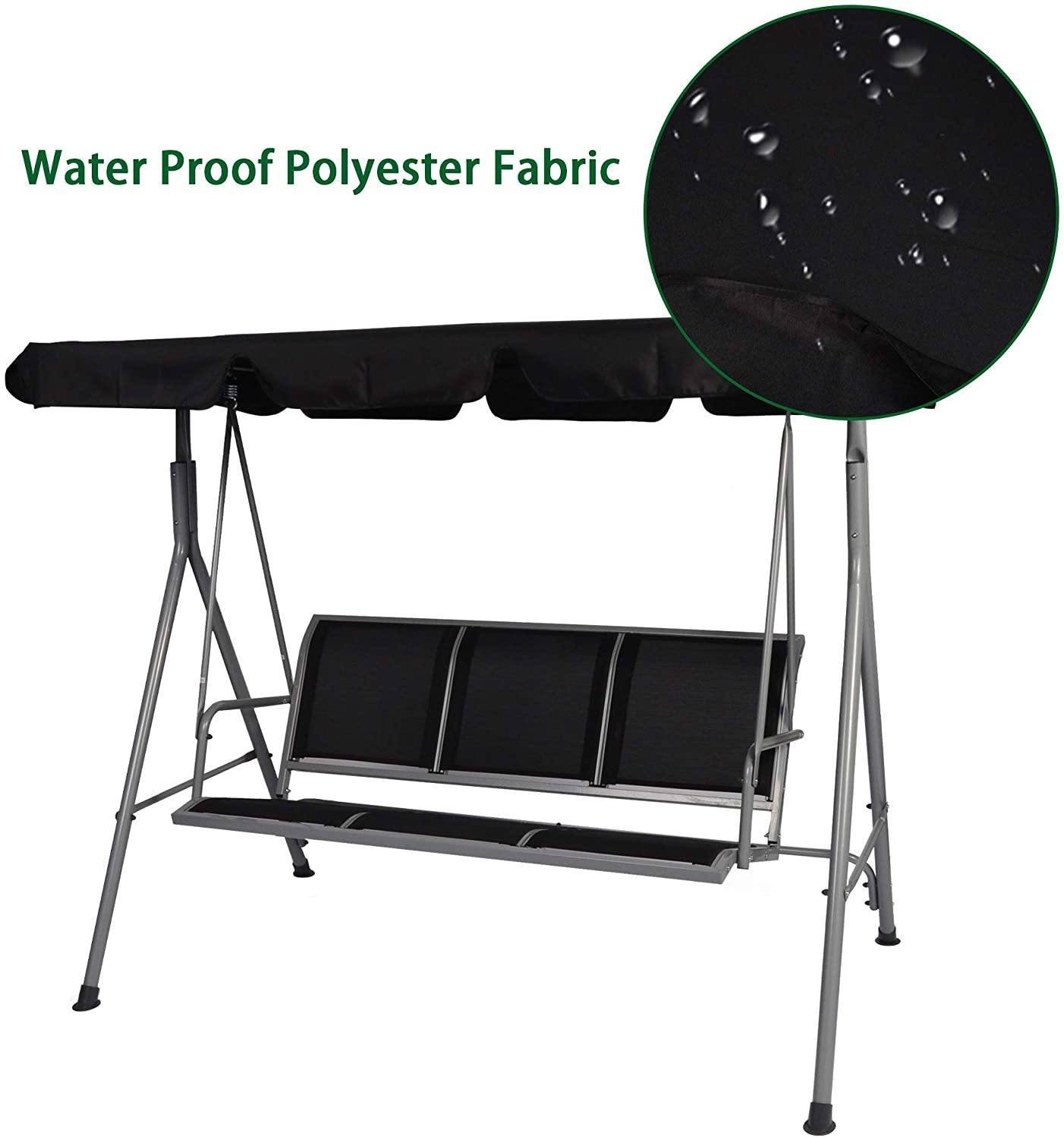 Premium Materials: Our outdoor swing is made of black powder-coated iron and can support up to 440pounds at one time. High-quality, the weather-resistant iron frame ensures long-lasting enjoyment for years to come.Weather Resistant: Outdoor porch swing chair with UV-resistant fabric canopy top allowing you to relax and swing in the comfortable shade. Meanwhile, it could provide a perfect outdoor lounging experience with the canopy design of rain protection, against the wind and dust.Angle Adjustable Canopy: The angle of the canopy can be adjusted by rotating the controller to provide optimal shade. If you are in the mood for sunbathing, just Loosen the controller to remove the canopy.Anti-slip Foot Tips and Wide Seat: The four plastic anti-skid feet pads make the patio swing safer and also prevent the floor from scratching. The spacious bench-style seating has plenty of room for up to three persons to swing and relax together.Wide Usages: When the weather is good, maybe you come in for a cup of coffee and talk with your families. The porch swing accentuates the color of the whole courtyard. Perfect for porch, patio, garden, yard, poolside, and other outdoor living space.
