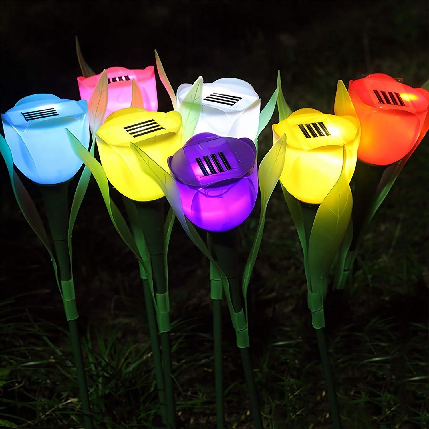 *WEATHER RESISTANT*:Feature long lasting durability,IP54 water-resistant. No worries about raining and snowing. Our solar garden tulip flower lights can work normally under all kinds of weather.