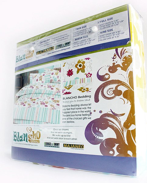 Four-piece set for Twin size (consisting of a pillow sham, a fitted sheet, a duvet cover & a comforter)
