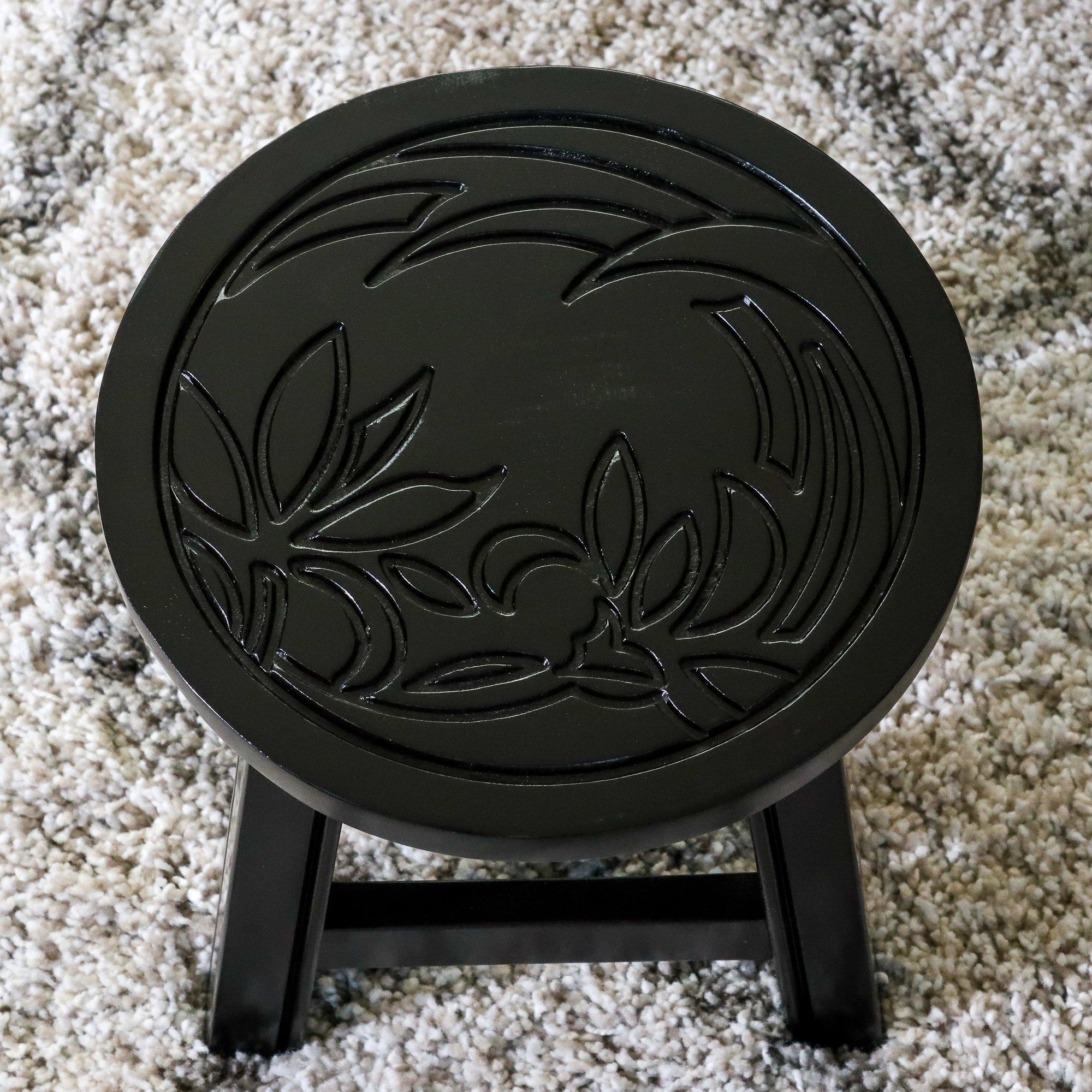 Home > Carved Wooden Step Stool, Floral, Espresso