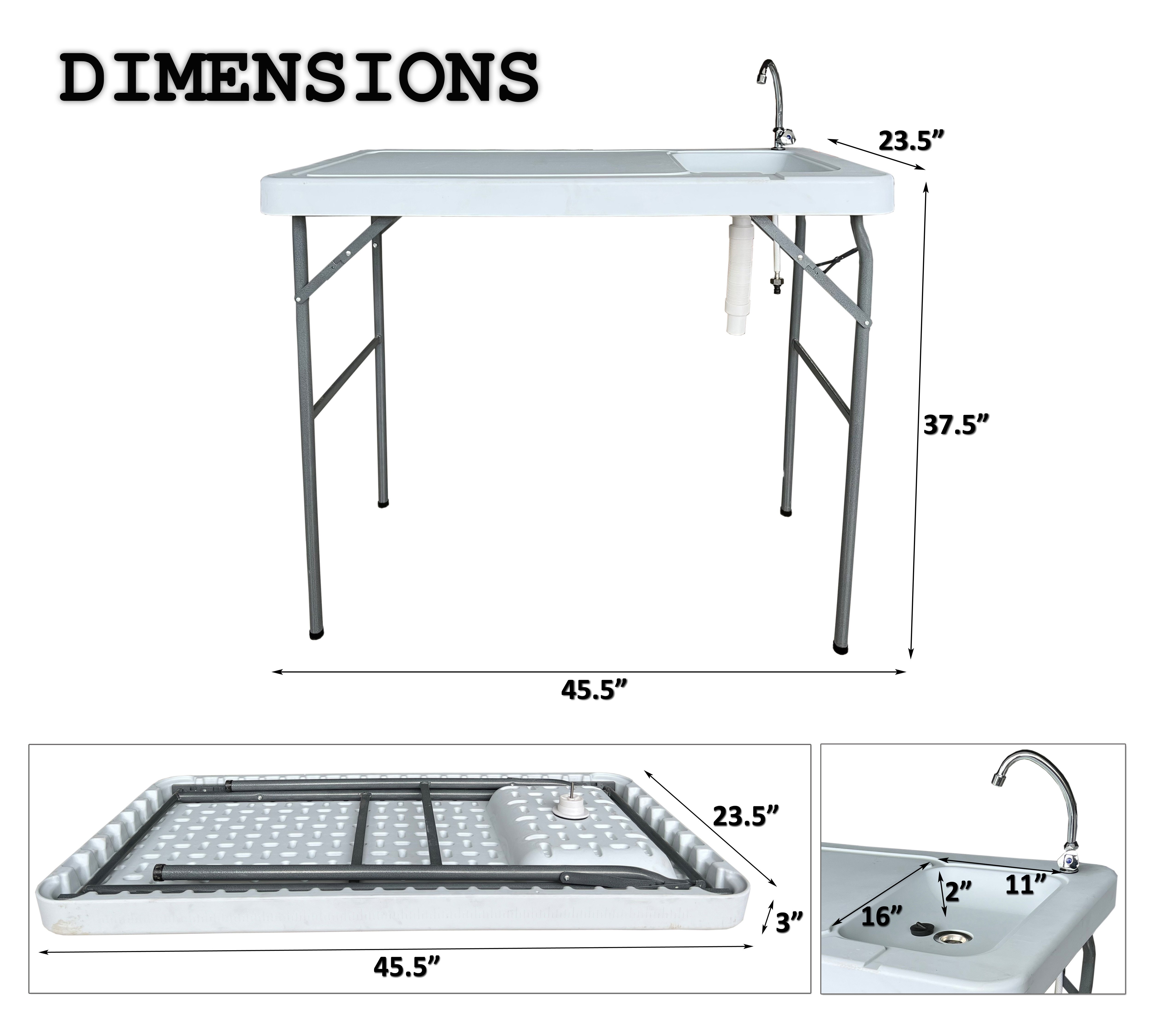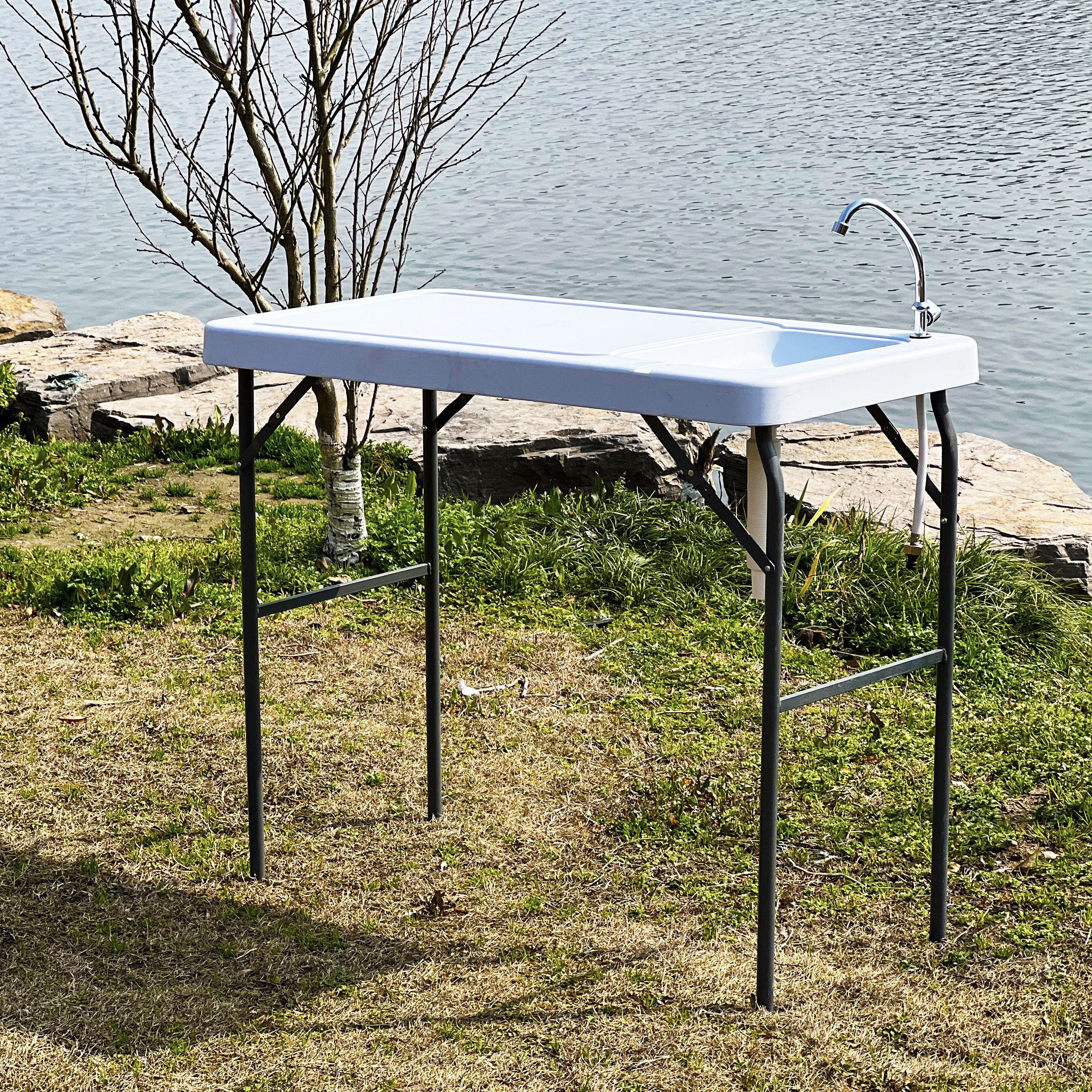 Foldable Cleaning TableFish Fillet Table with detachable faucet & drain; Combines sink for washing & work surface on which you can process fish; cut vegetables & fruits