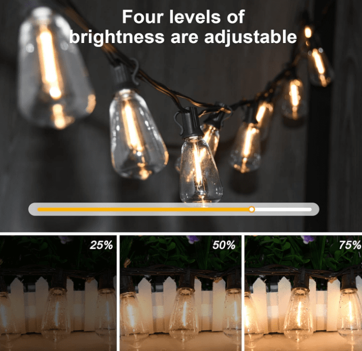 Adjustable light: LED outdoor strings emit a warm white glow, and you can adjust the brightness with a compatible outdoor light string dimmer. Each socket with clips, easy to hang up and install anywhere, enjoy the romantic ambience with your friends and family