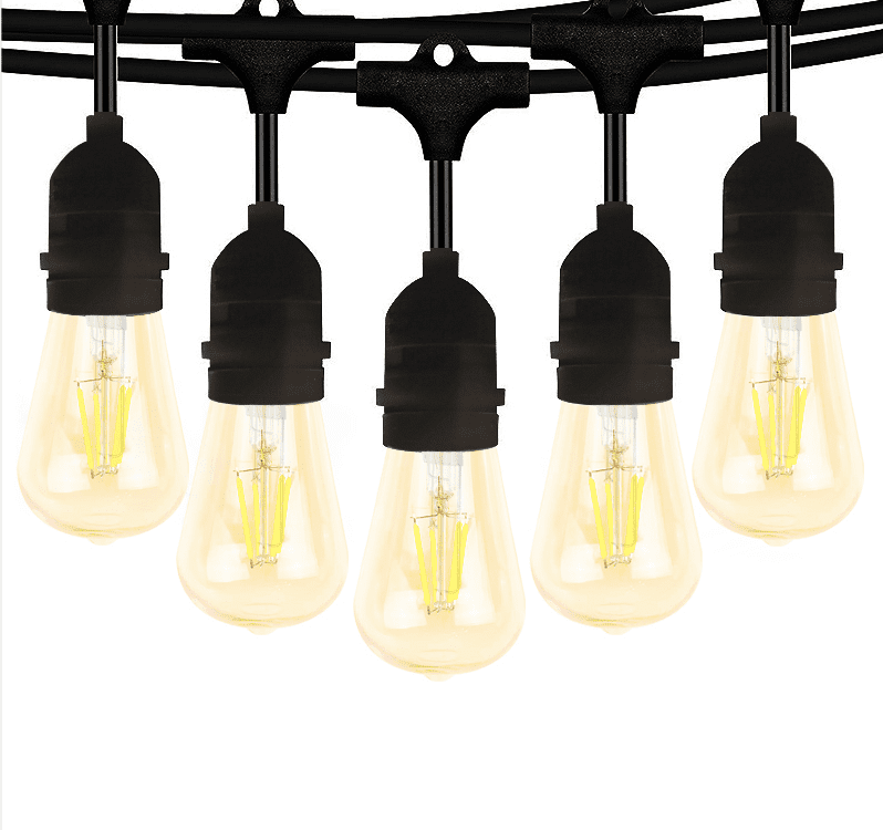 UL market: ST40 LED bulb string lamp has C9 / E17 middle base, a total of 22 bulbs (2 standby), 0.6 watt / 120 volt bulbs. Edison led bulb strings perfect for outdoor parties, Christma, terrace, deck, yard, dining room, porch, garden, terrace, pergola, cafe decoration