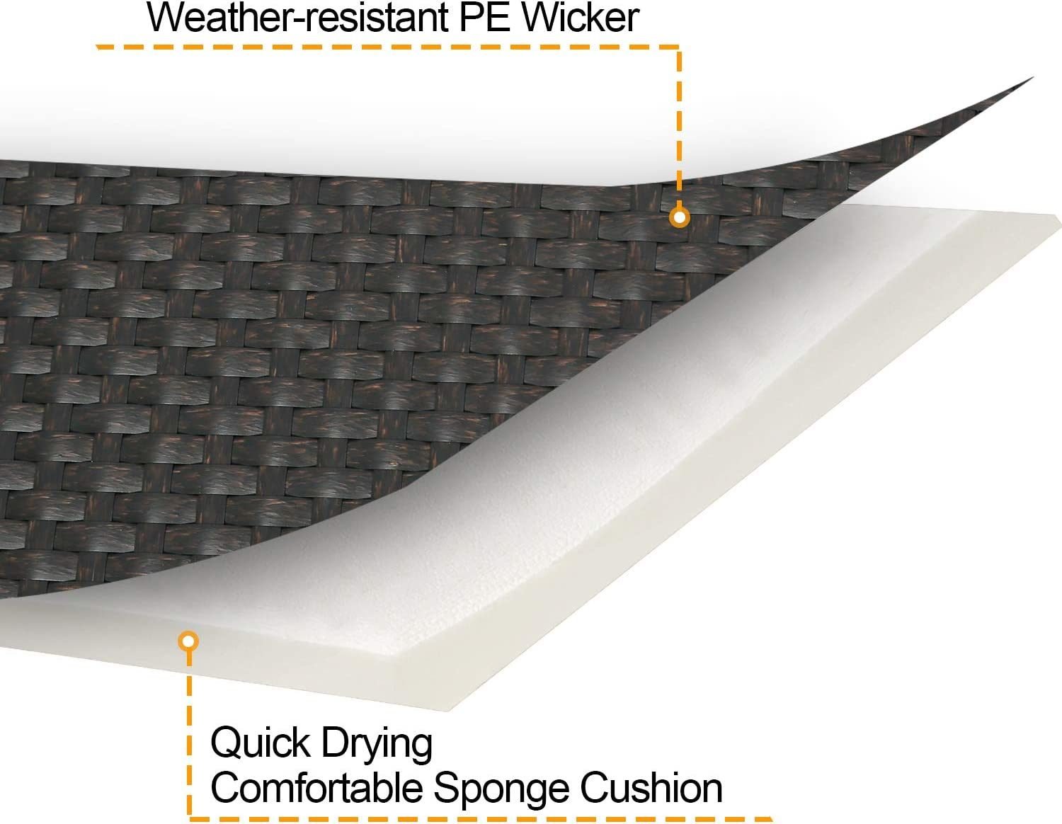 2.Quick Dry Foam: Entire bed and back of chaise are padded with quick dry foam foam beneath the all-weather weave, creating the ultimate in comfort and easy maintenance