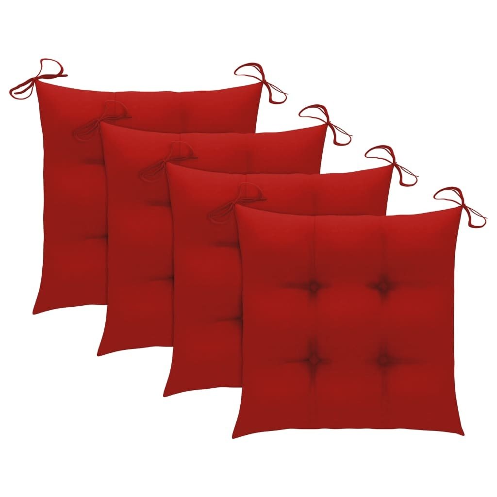 Patio Chairs with Red Cushions 4 pcs Solid Teak Wood