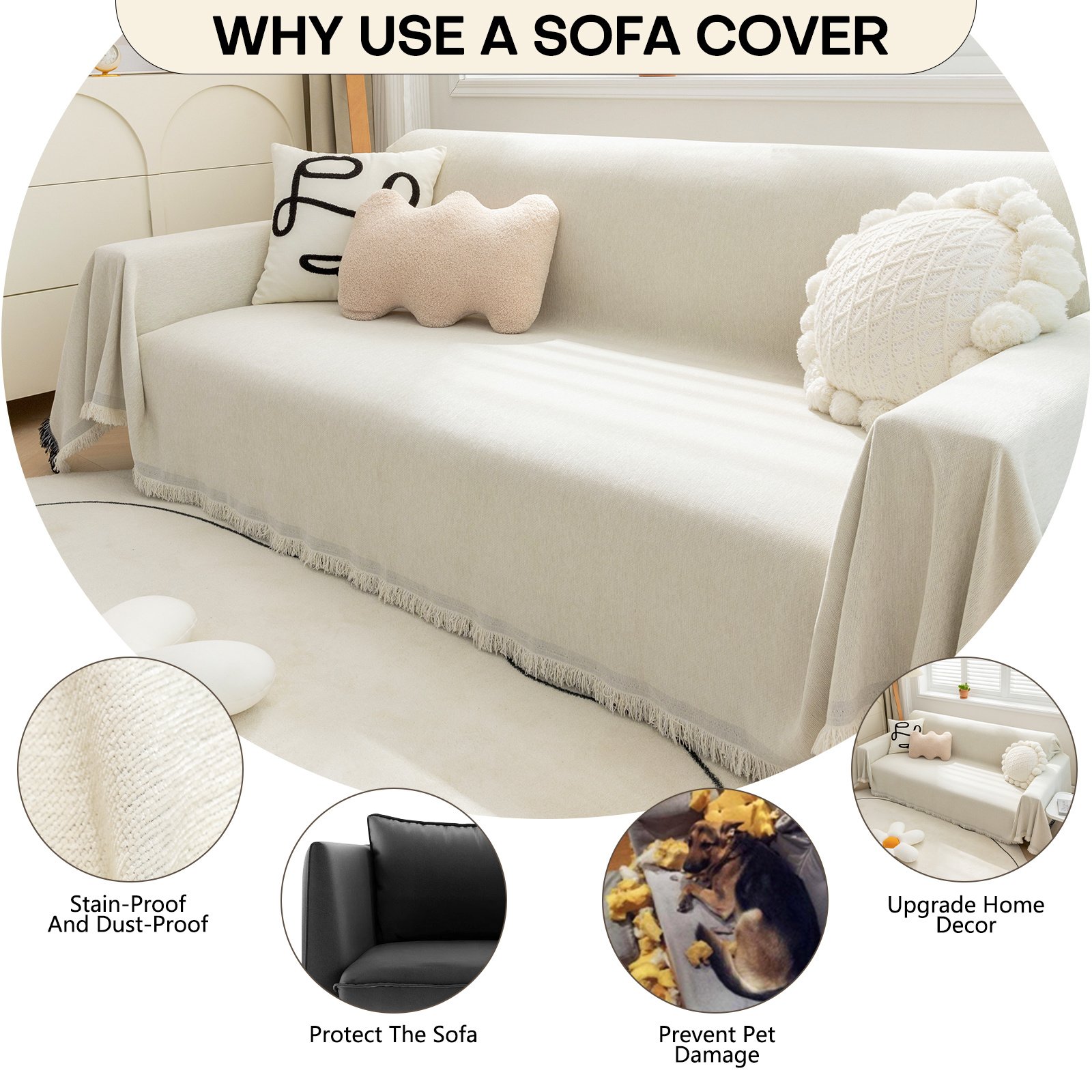 [High Quality Fabric]The couch cover is made of high-quality chenille fabric, which is soft and comfortable, thick and durable, wear-resistant and wrinkle-resistant, not easy to scratch, no pilling, no snagging, is a stylish and beautiful decoration for the living room, also a good couch cover for dogs and cats, avoid them from damaging your sofa and furniture, can be used in all seasons.<br/>