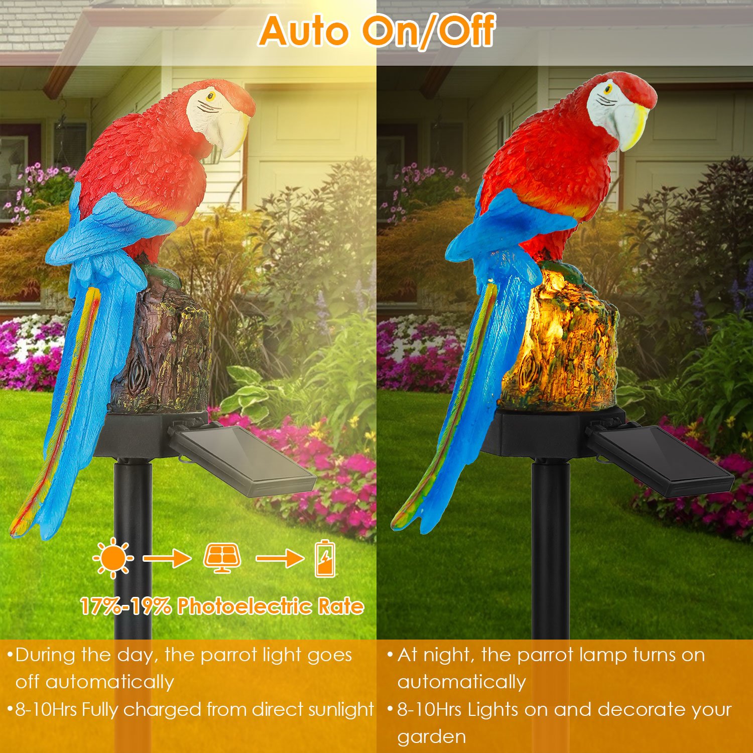 *Unique Parrot Design*:Cute parrot design,perfect for decorating your garden,lawn,pathway,patio,walkway,fence,backyard decoration etc.. Enjoy the fine craftsmanship of the statue during the daytime and appreciate the shining splendor of the lamp at night.