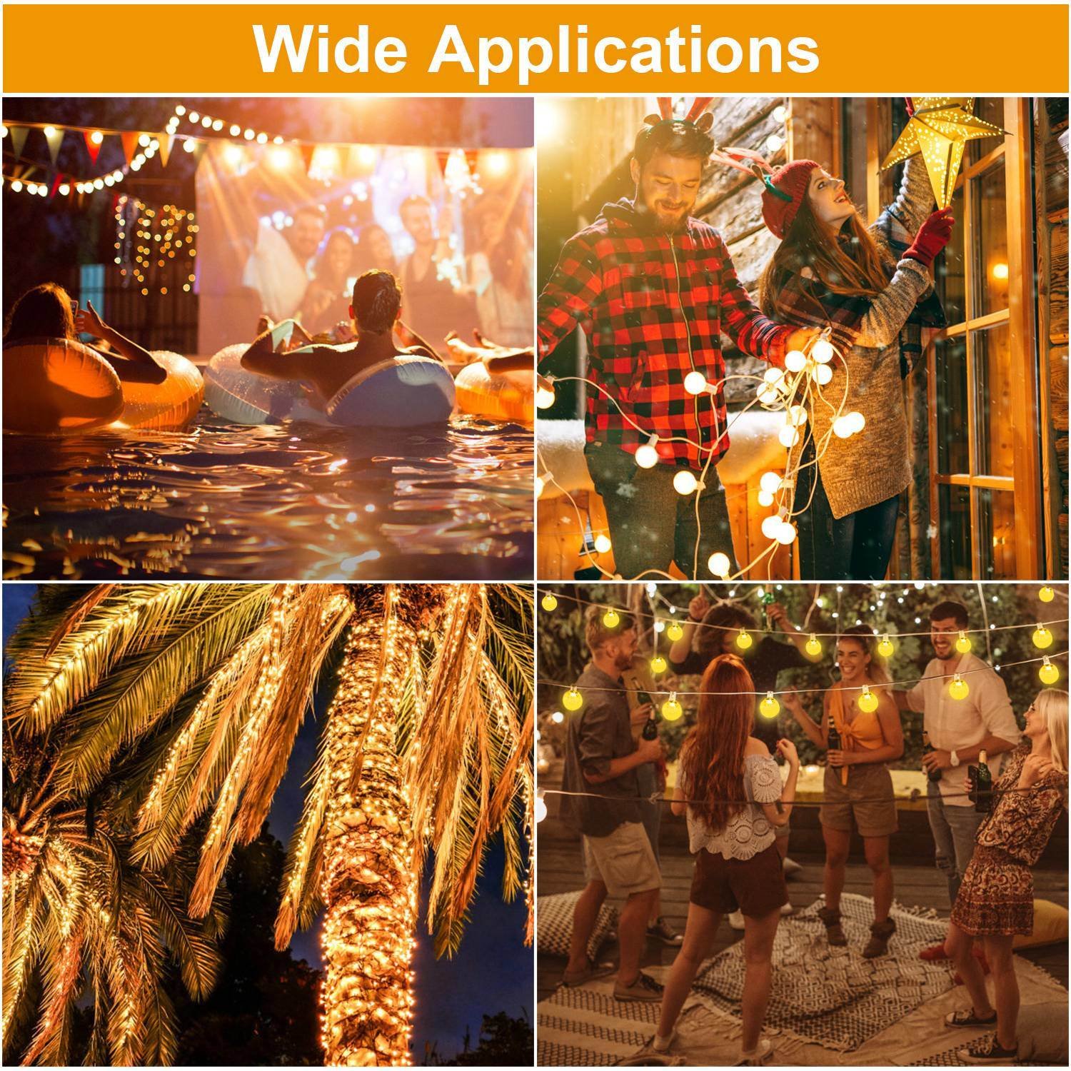 **IP65 WATERPROOF & OUTDOOR DECOR*:Manufactured from IP65 waterproof and dustproof rated ABS material,this string light is designed to withstand light rain,water spills,dust and dirt in harsh environment. Ideal for year-round decoration lighting to lawn,garden,yard,patio,gazebo and for holidays,events,weddings,etc..