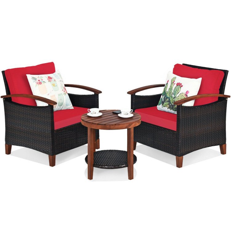 Home > 3 Pieces Patio Rattan Furniture Set with Washable Cushion and Acacia Wood Tabletop