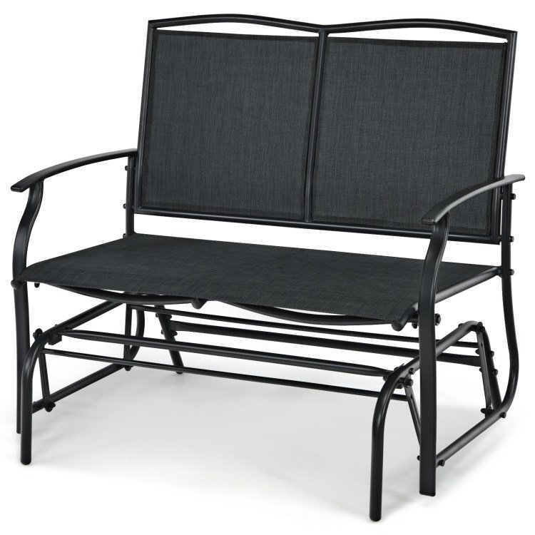 This patio glider chair is made of heavy duty powder coating metal tubes, which is strong enough to endure any weather outside. The seat and backrest are made of durable fabric, which is weather-resistant, waterproof. The ergonomic backrest and armrests are very helpful to relieve the fatigue after a whole day's work and make you relax completely. Thus, you will feel as comfortable as ever and not feel tired even spending a long time on it. In addition, the gliding mechanism ensures you a quiet, smooth rocking experience. This classic style garden bench is a great way to enjoy your time outdoors while creating a cozy and inviting accent to any porch, yard, or lawn!