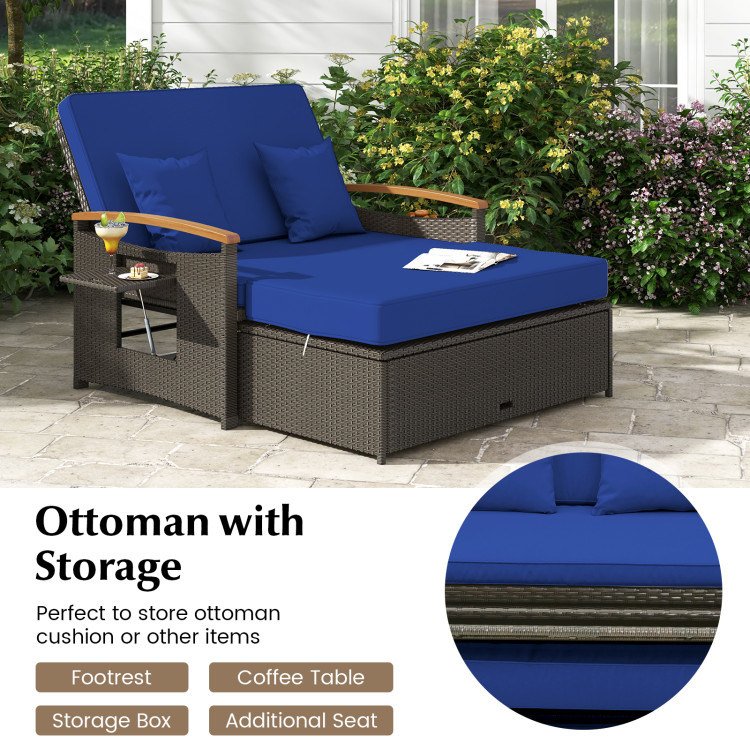 Outdoor Wicker Daybed with Folding Panels and Storage Ottoman