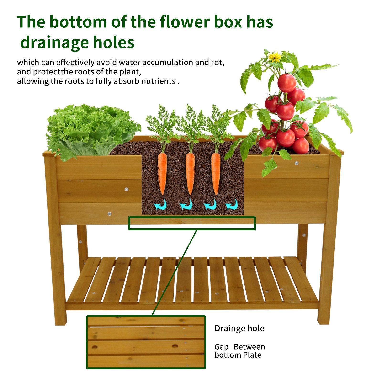Raised Garden Bed Planter Box with Legs & Storage Shelf Wooden Elevated Vegetable Growing Bed for Flower/Herb/Backyard/Patio/Balcony 48.5x30x24.4in