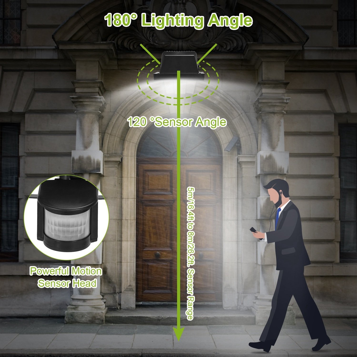 **Light Sensor & Motion Sensor Supported*:The inbuilt light sensor can sense the ambient brightness from 5-20 Lux,the larger the lux value,the brighter ambient that our wall light will auto on when motions are detected. Built-in PIR motion sensor of our solar lights features 26.2ft maximum detection distance and almost 120°detection angle. This duration can range from 8S to 2Min.