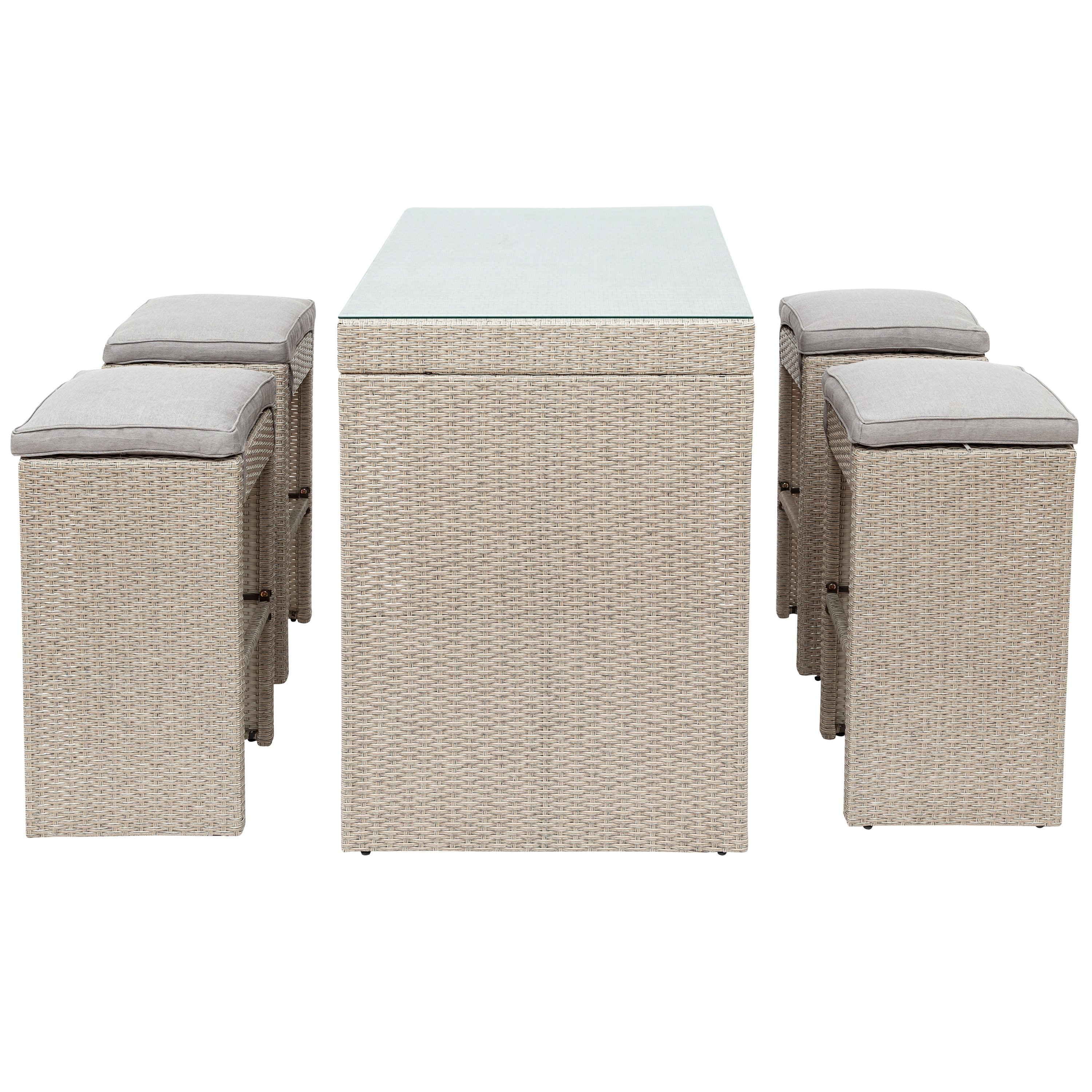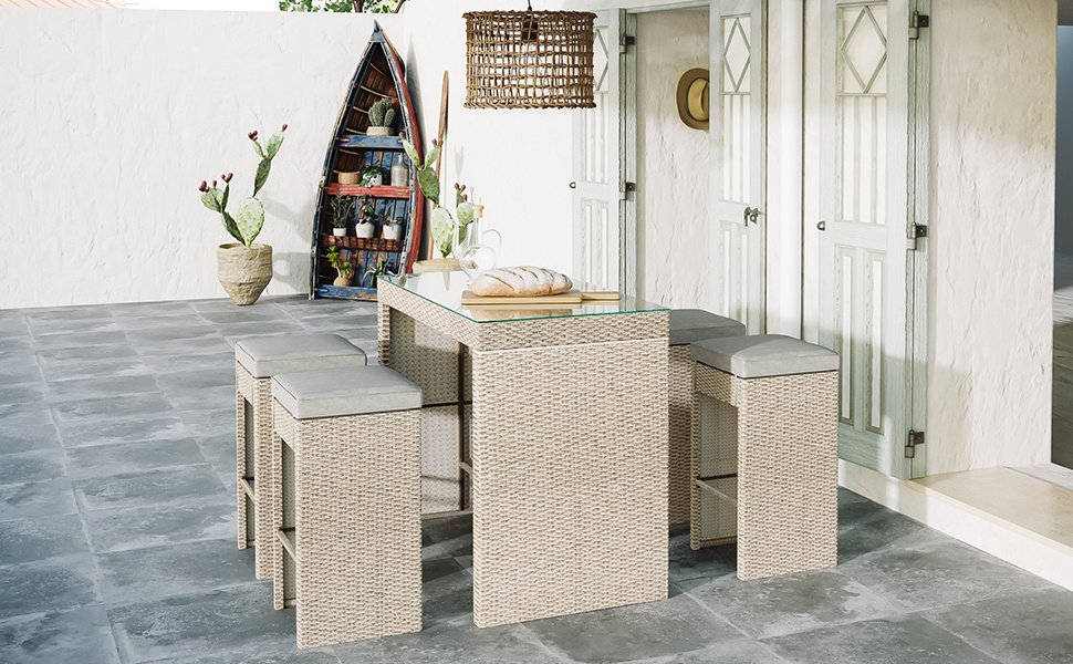 Store these 4 stools under table when not in use to keep your backyard organized and save space for more other products.
